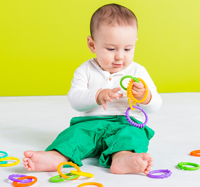 다양한 질감과 컬러로 구성되어서 아이의 시각과 촉각 발달에 도움이 됩니다. 고리끼리 잇거나 다른 장난감에 고리를 끼울 수도 있어서 활용도가 높아요. 울퉁불퉁한 고리를 잡으며 아이들은 다양한 질감을 경험해볼 수 있어요.