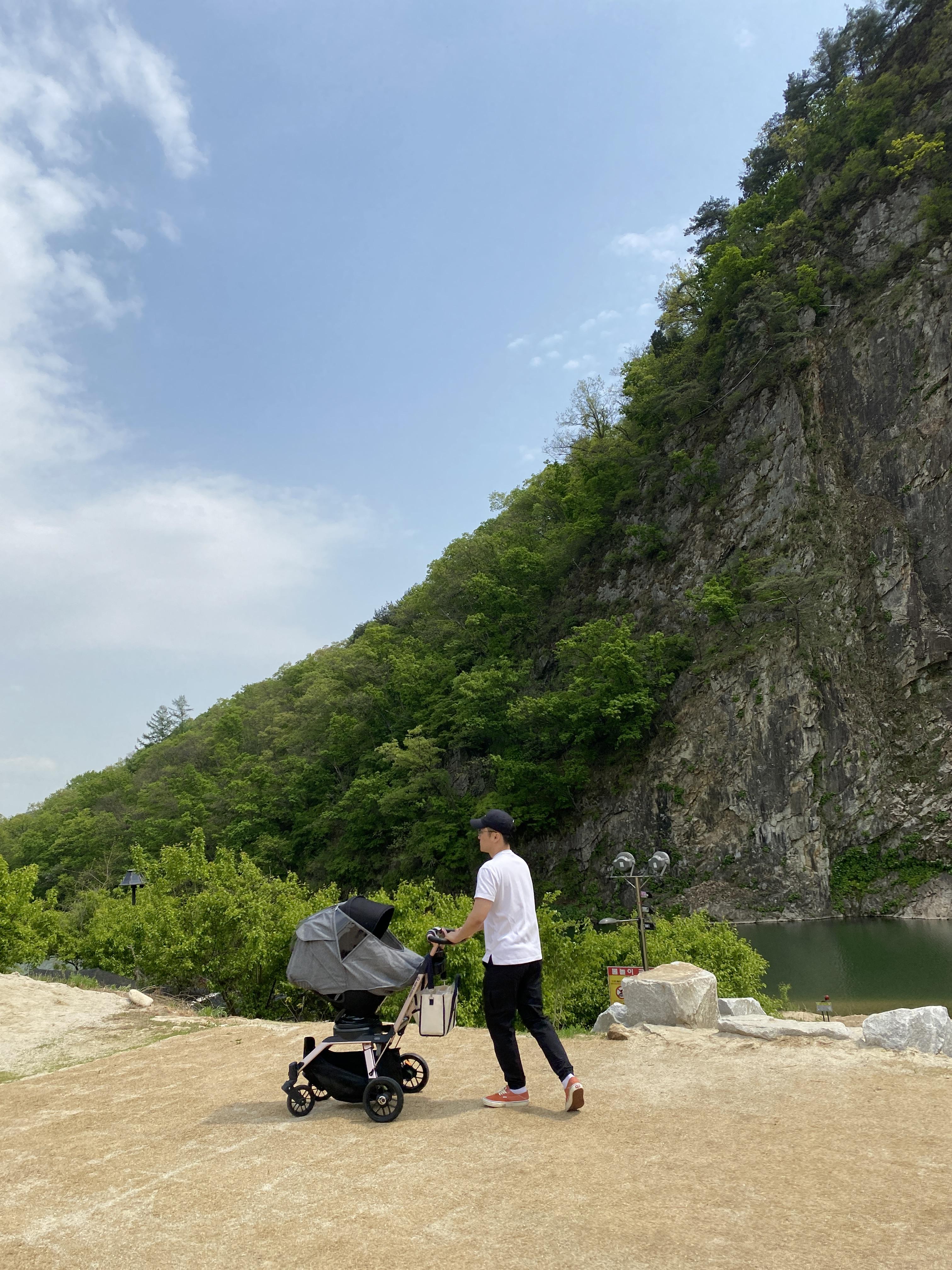산아래 주차하는 바람에 유모차를 못 가지고 올라왔다.