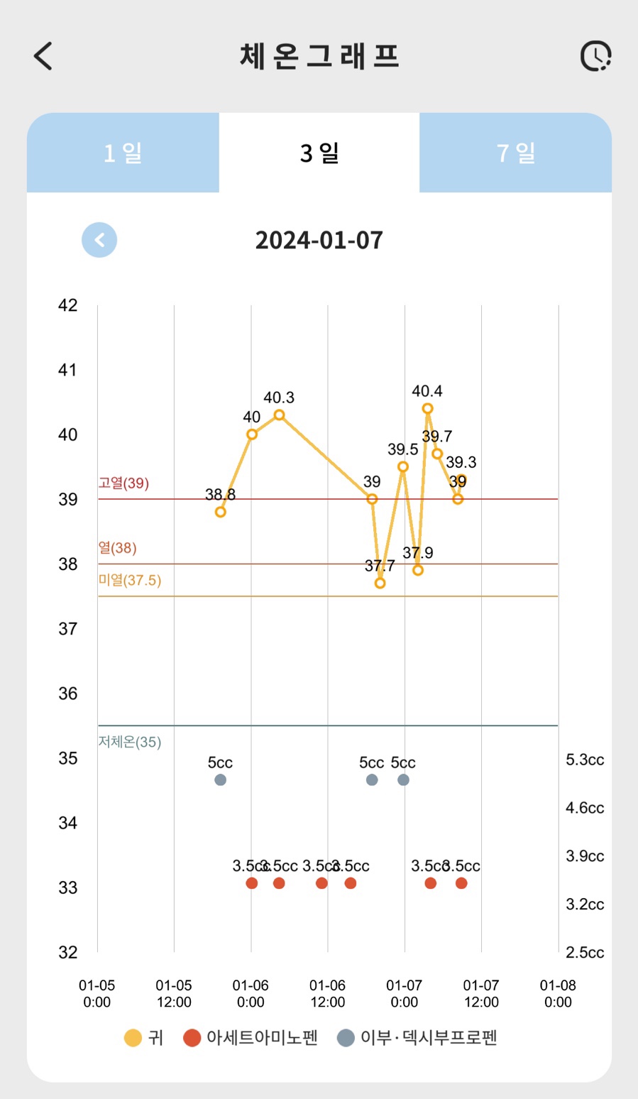 4~5시간에 한번씩 계속 해열제를 먹였고,